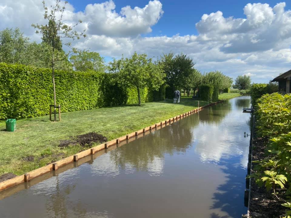 In opdracht van een particuliere klant heeft De Vries Stolwijk B.V. een nieuwe dam aangelegd, beschoeiing geplaatst en baggerwerkzaamheden verricht.